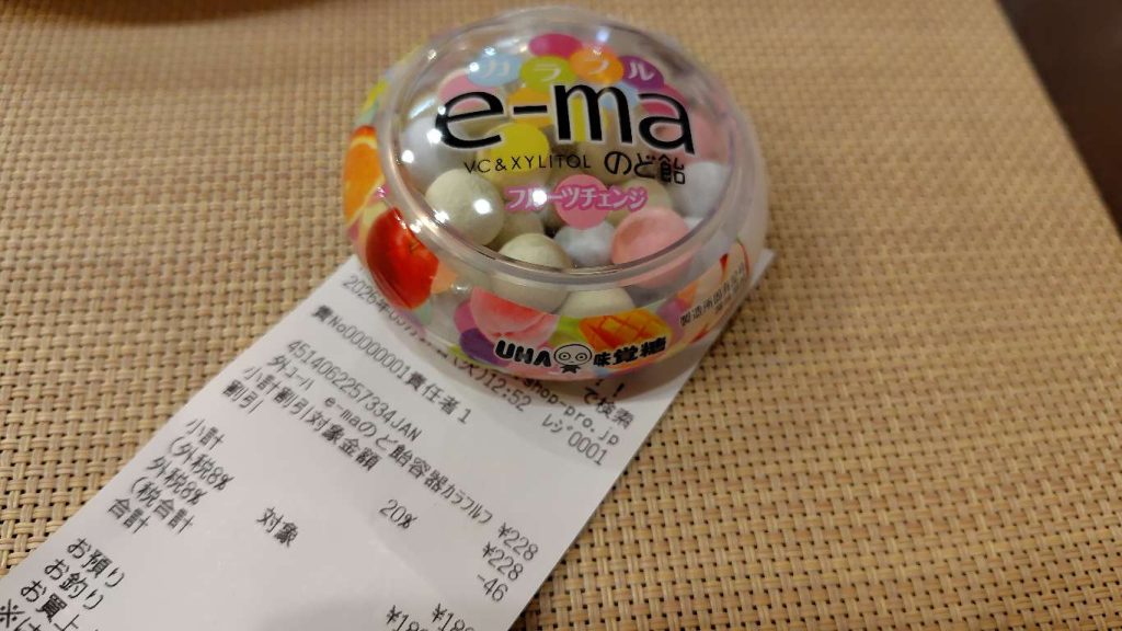 今回は久々に活用。まるしげでイーマのど飴を2割引で買えました。