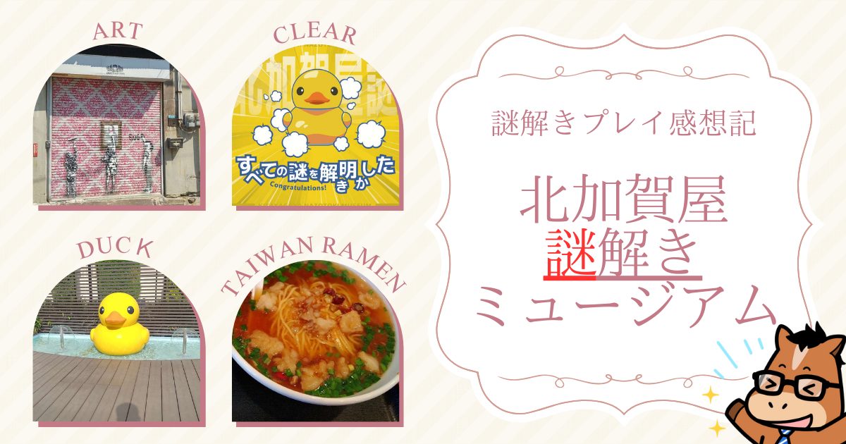 同じフラップゼロ企画で、京都市営地下鉄と北加賀屋でどちらに行くか迷ったのですが、行楽シーズンの京都を避け、家から自転車で行ける北加賀屋で『北加賀屋×リアル謎解きゲーム北加賀屋謎解きミュージアム』をプレイしてきました。